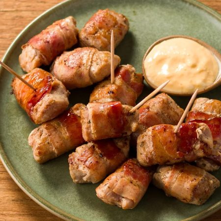 Receita de Filé Mignon Suíno com Bacon acompanhado de Maionese Apimentada e Defumada