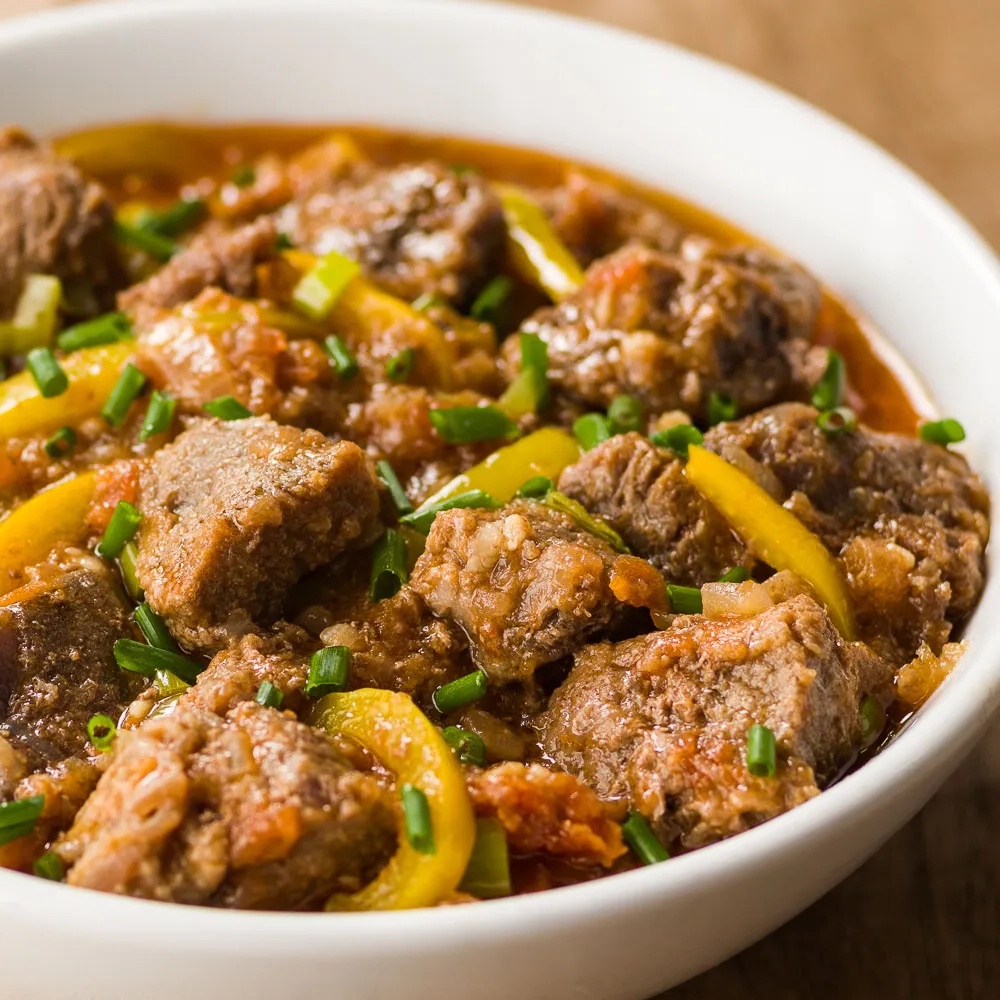 - Finalmente, volte a carne para a panela, adicione o pimentão refogado e misture tudo no molho. Este é o momento em que todos os sabores se unem, criando um prato harmonioso e delicioso.