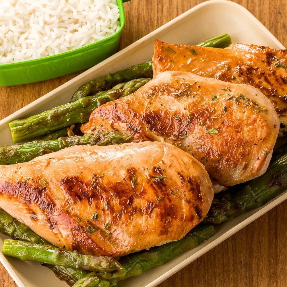 - Finalmente, disponha os aspargos em uma assadeira, servindo-os de cama para os filés de peito assados. Essa apresentação não só é bonita, mas também ajuda a manter os sabores e texturas do prato coerentes e atraentes.