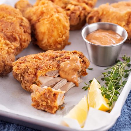 - Ao notá-lo dourado, espete com um palito de dente para confirmar seu completo cozimento. Essa etapa é crucial, pois garante que o frango esteja cozido por dentro e crocante por fora.