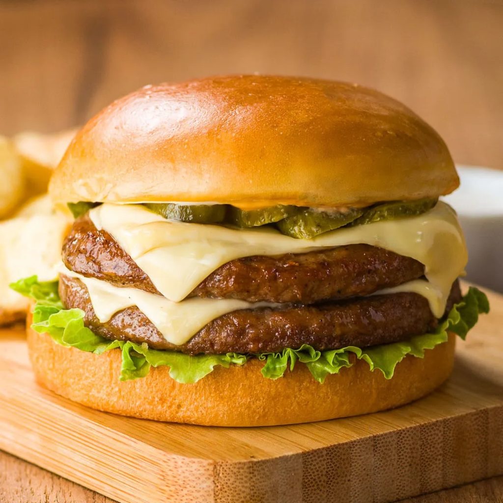 - Coloque uma fatia de mussarela em cima de cada hambúrguer.