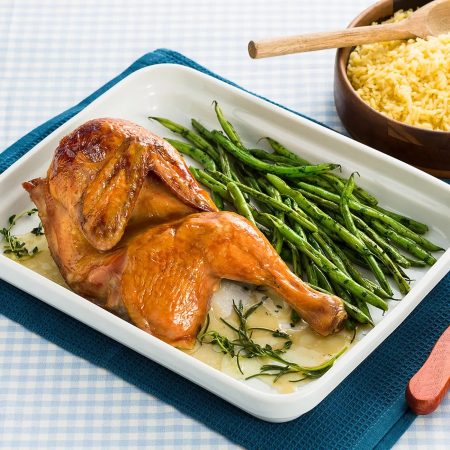 - Preaqueça o forno a 180ºC e coloque o Leitão Temperado em uma assadeira. Leve para assar por 1 hora e 20 minutos. Após esse tempo, retire-o do forno e deixe descansar por 5 minutos antes de cortar.