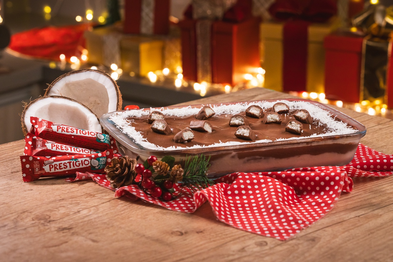 - Decore a parte superior com coco ralado e pedaços de Chocolate PRESTÍGIO picados.