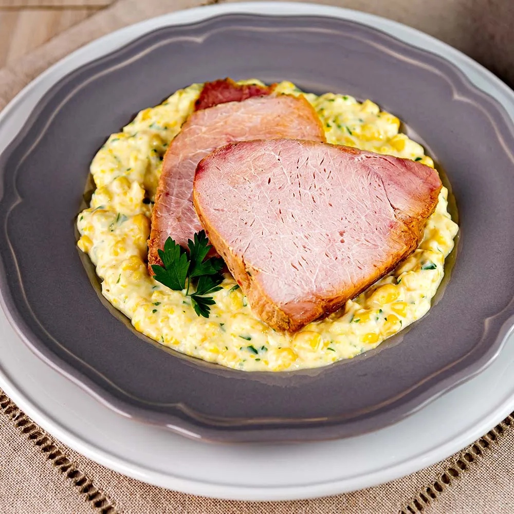 - Finalize o creme de milho adicionando salsa picada e creme de leite. Essa combinação não só adiciona sabor, mas também uma textura cremosa que complementa perfeitamente o pernil suíno.