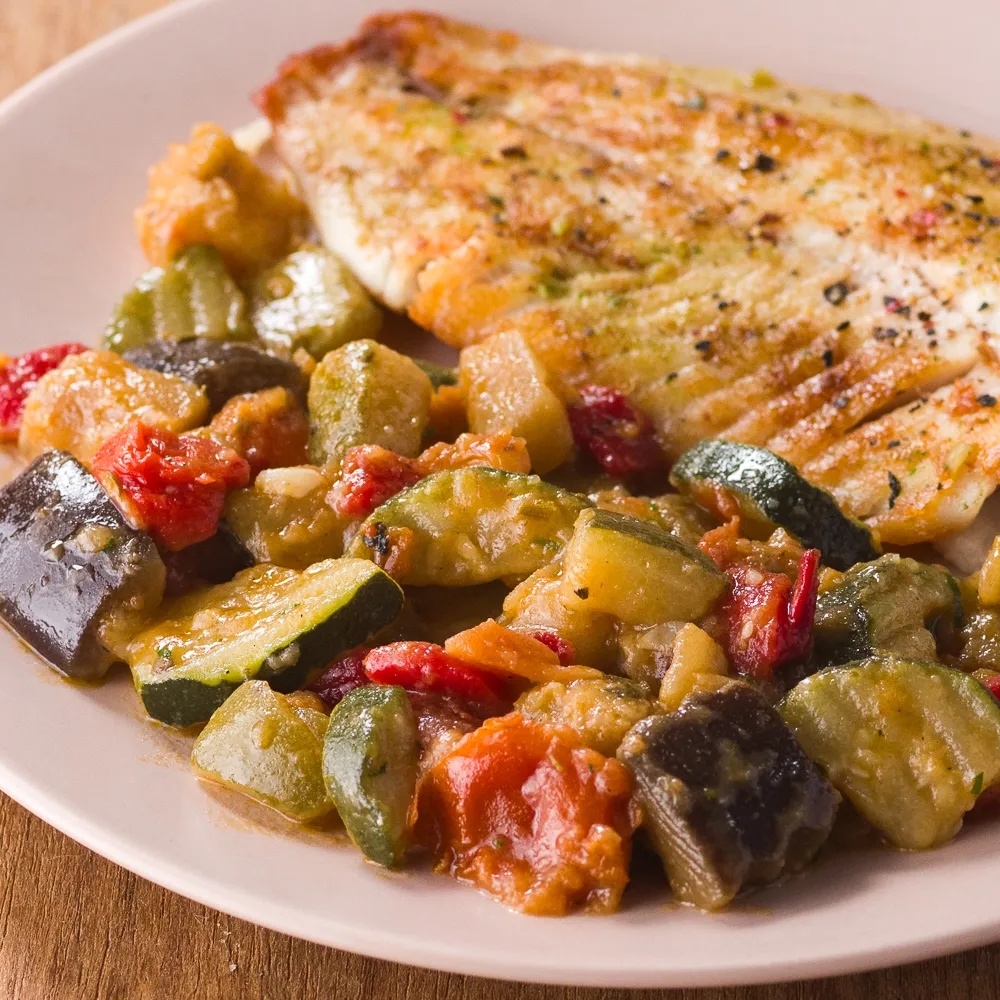 - Retire os filés de tilápia da frigideira e sirva com o ratatouille. Essa combinação é perfeita, pois o sabor terroso do ratatouille complementa perfeitamente a delicadeza do peixe.