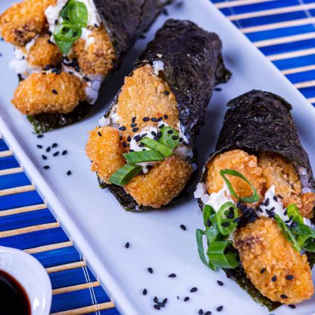 - Ao retirar os Tempurás do óleo, salpique um pouco mais de sal para realçar o sabor. Sirva ainda quente, acompanhado de molho Shoyu e um fio de óleo de gergelim. Para finalizar, decore com cebolinha picada, que adiciona um frescor incrível ao prato.