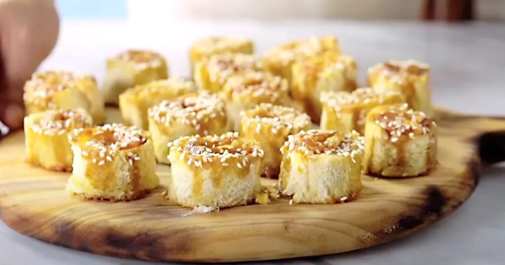 - Despeje o molho preparado sobre as fatias de pão no refratário, certificando-se de que todas as fatias estejam bem cobertas. Polvilhe o gergelim sobre o molho para adicionar um toque crocante e um sabor extra.