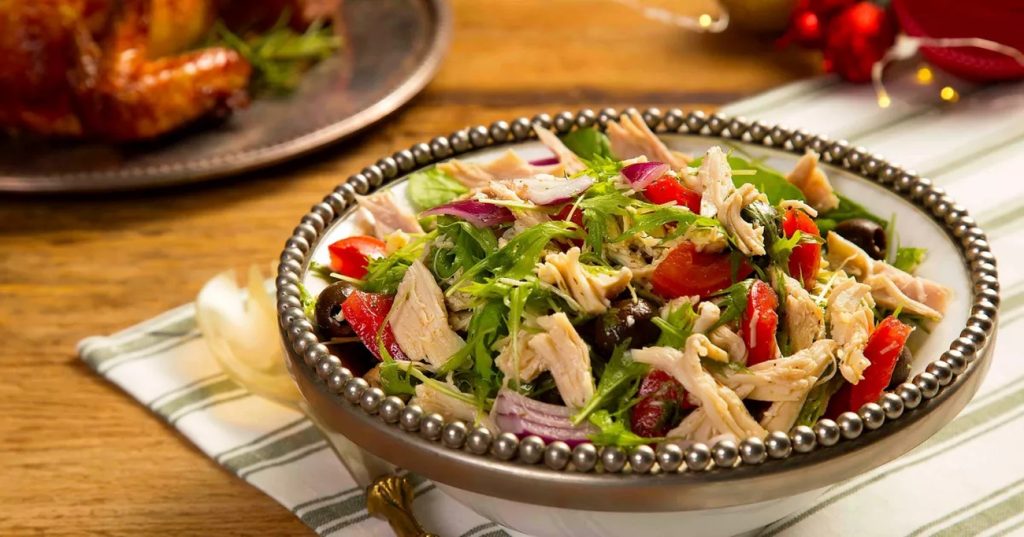 - Em uma tigela grande, coloque o Chester Desossado Perdigão, a alface, a salsinha, o tomate, a cebola e a cebolinha e jogue o molho por cima incorporando tudo delicadamente.