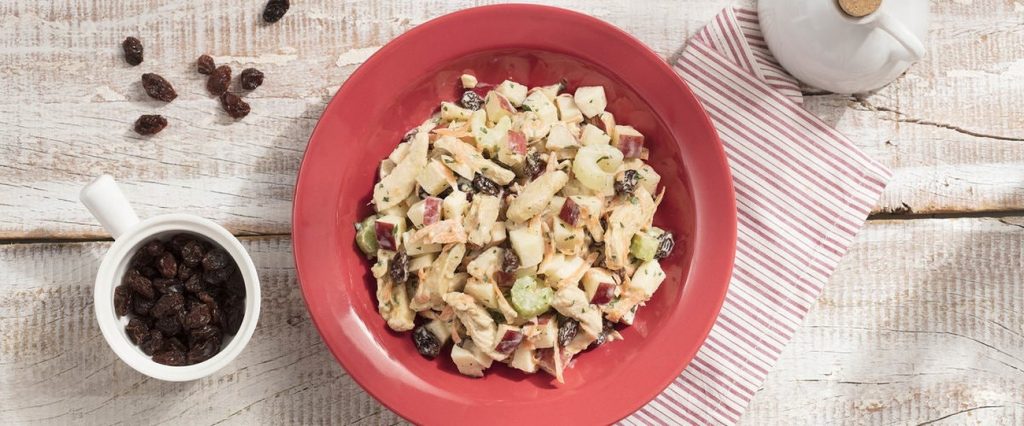 - Em um recipiente grande, adicione o frango já frio. Acrescente o salsão picado, a cenoura ralada, as maçãs em cubos, as uvas-passas pretas, o suco de limão, o pote de iogurte e a salsa picada. Misture todos os ingredientes até obter uma combinação homogênea e saborosa.