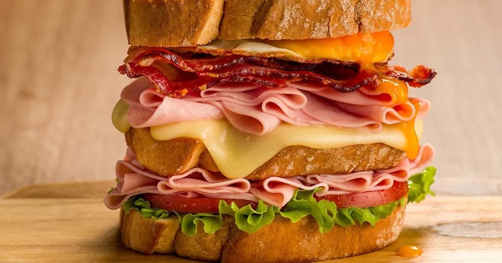Quem não ama um sanduíche caprichado no almoço? Lembre-se de quando você era criança e seu pai ou mãe preparava esses deliciosos sanduíches para você em casa? O cheiro do bacon crocante e o sabor do presunto e do queijo mussarela misturados com a frescura da alface e do tomate cortado em rodelas… É um momento que nunca se esquece! E hoje, vamos preparar um sanduíche caprichado de presunto e bacon Sadia que certamente será um sucesso na sua família. Com ingredientes simples e acessíveis, você pode criar um prato delicioso e saudável para todos os dias. Então, vamos começar a preparar nosso sanduíche caprichado de presunto e bacon Sadia, com 3 fatias de bacon Sadia, 1 ovo, sal a gosto, pimenta-do-reino a gosto, 3 fatias de pão de forma, 2 folhas de alface, 1 tomate cortado em rodelas, 4 fatias de presunto Sadia e 2 fatias de queijo mussarela Sadia.
