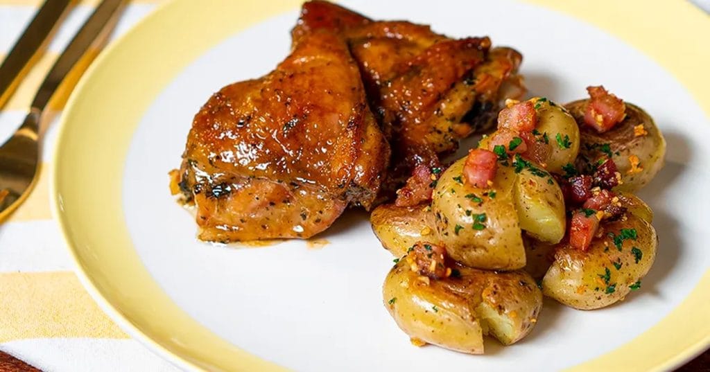 Quem não se lembra das tardes passadas na cozinha da família, rodeado de cheiros deliciosos e momentos inesquecíveis à mesa? A cozinha é um lugar mágico onde podemos criar e compartilhar momentos especiais com as pessoas que amamos. Hoje, vamos preparar uma receita clássica e deliciosa que certamente vai trazer sorrisos e satisfação para a sua família: Sobrecoxas de Frango com Batatas ao Murro. Com sobrecoxas de frango suculentas, batatinhas baby crocantes e um toque de bacon e alho, essa receita é perfeita para um jantar em família ou um almoço especial.