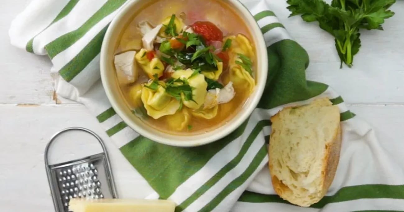 Quando penso em sopa de frango, lembro-me de momentos à mesa com a família, compartilhando histórias e risadas enquanto saboreávamos aquele prato quente e delicioso. A sopa de frango é um clássico que nunca sai de moda, e hoje vou compartilhar com vocês uma receita especial que combina perfeitamente a sopa com pastelinhos de massa de farinha de trigo e gemas de ovo, conhecidos como tortellini. É uma combinação que vai deixar todos os membros da família felizes e satisfeitos. E, para tornar ainda mais especial, vamos incluir alguns ingredientes principais, como caldo de frango, tomates em cubos escorridos e espinafre jovem.