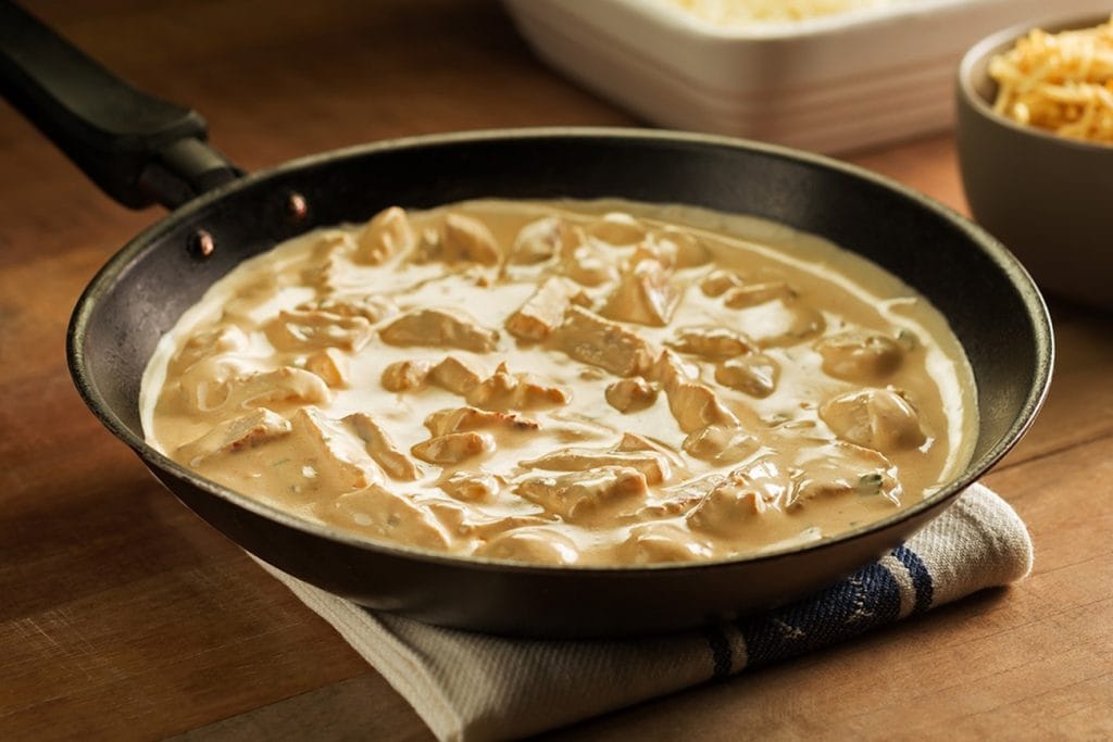 - Por fim, acrescente o creme de leite e misture muito bem. Deixe em fogo baixo até levantar fervura, mexendo ocasionalmente para evitar que o creme de leite queime ou forme grumos.