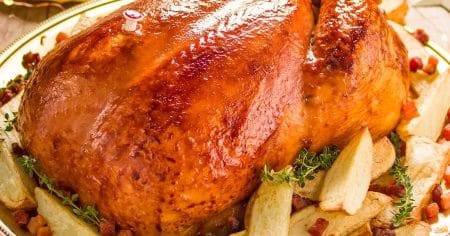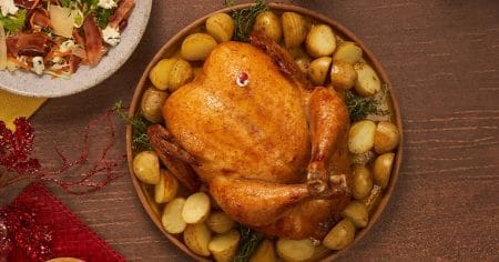 - Quando estiver faltando 30 minutos, passe a Qualy cremosa com sal por cima da ave e volte ao forno para dourar.