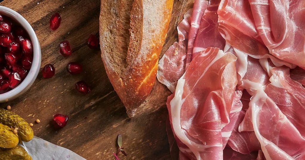 - Disponha as fatias de Baguete ao lado do presunto.