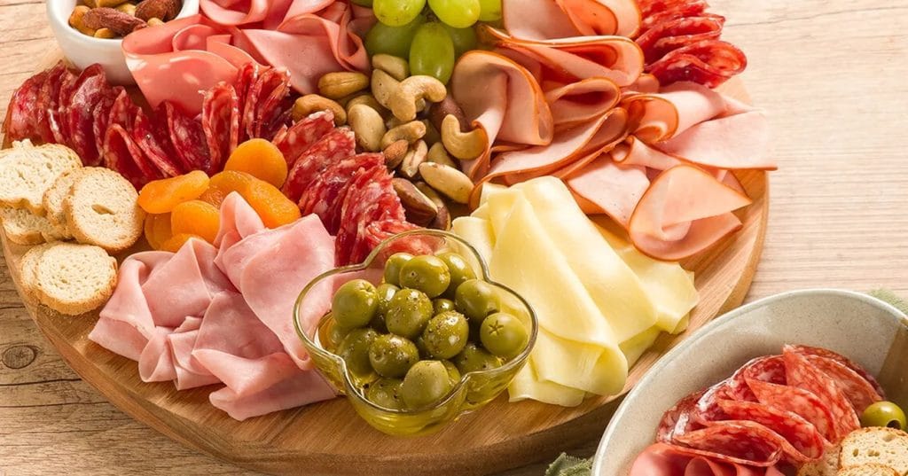 - Para começar, escolha uma tábua redonda que seja grande o suficiente para acomodar todos os ingredientes de forma harmoniosa. Disponha o Salame tipo Italiano Fatiado Sadia, o Peito de Peru Fatiado Soltíssimo Sadia, o Presunto Fatiado Soltíssimo Sadia, a Mortadela Defumada Fatiada Soltíssimo Sadia e o Queijo Mussarela Fatiado Soltíssimo Sadia sobre a tábua, criando um arranjo que seja atraente e convidativo.