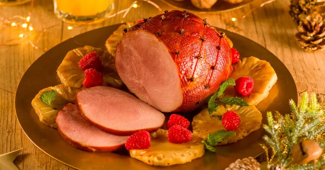 - Com a ponta de uma faca, risque a superfície do tender, formando losangos. Espete os cravos nas junções.