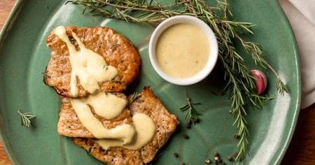 - Em um recipiente, coloque o líquido do fundo da assadeira e misture com hortelã picada. Sirva o molho com o tender fatiado. O líquido da assadeira é cheio de sabores e, quando misturado com a hortelã, cria um molho delicioso e fresco.