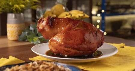 - Em uma assadeira, coloque o tender e regue-o com o suco de laranja e com o mel. Isso fará com que o tender absorva todos os sabores e aromas.