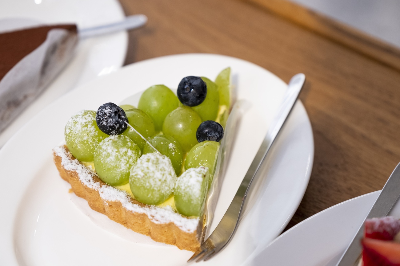 - Arrume as uvas sobre a torta. As uvas Itália e uva rubi adicionam uma doçura natural e uma beleza visual inigualável à sua torta.