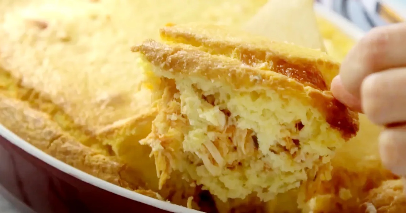 Para garantir que a torta fique com uma textura suave e fofa, certifique-se de não sobrecarregar a forma com a massa. Além disso, se você quiser dar um toque extra de sabor, pode adicionar algumas ervas frescas, como salsinha ou cebolinha, à mistura de frango antes de montar a torta.